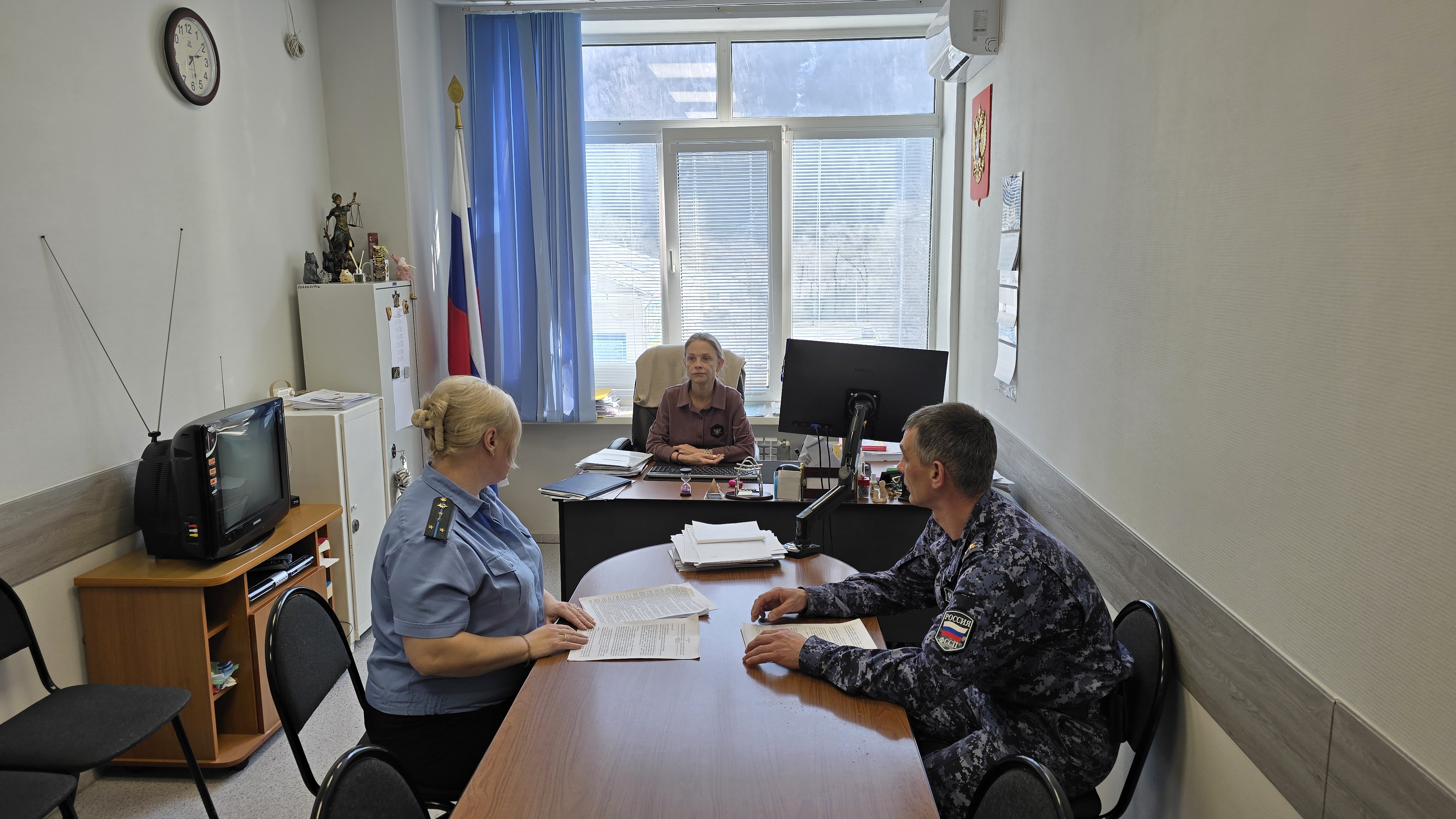 11 марта 2025 года прошла рабочая встреча ио председателя Дальнегорского районного суда Ерновской Н.В., с участием начальника отделения-старшего судебного пристава ОСП по Дальнегорскому городскому округу Ахматшиной А.Ю. и ССО по ОУПДС Батуриным Е.М. на тему: